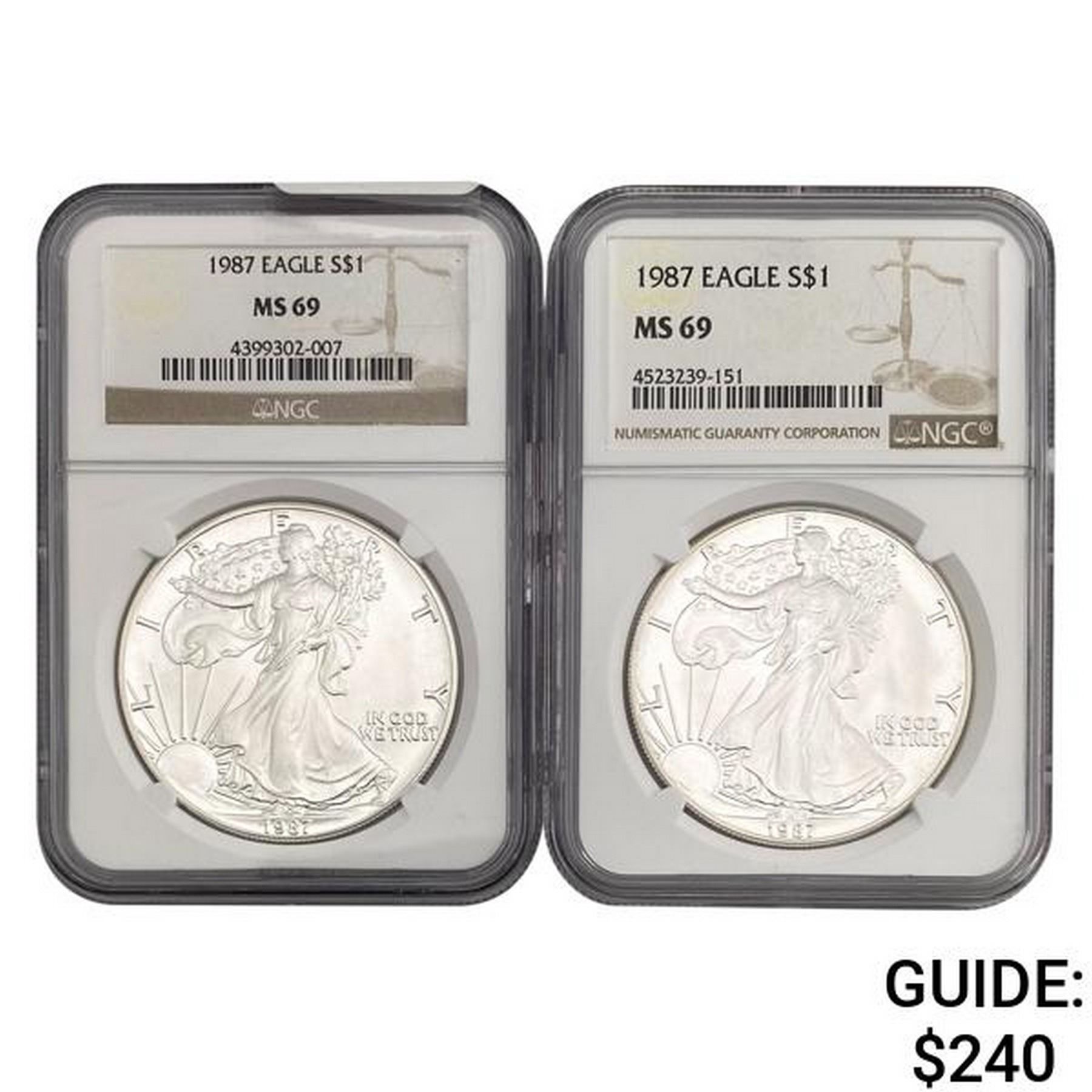 1987 American Silver Eagle NGC MS69 [2 Coins]