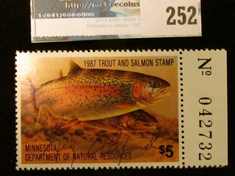 1987 Artist Signed Trout and Salmon Stamp Minnesota Department of Natural Resources. Mint condition, with panel number.