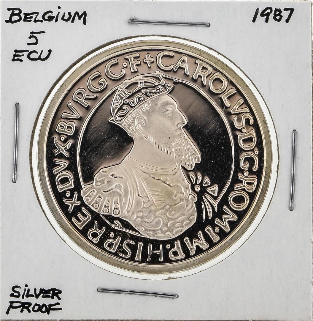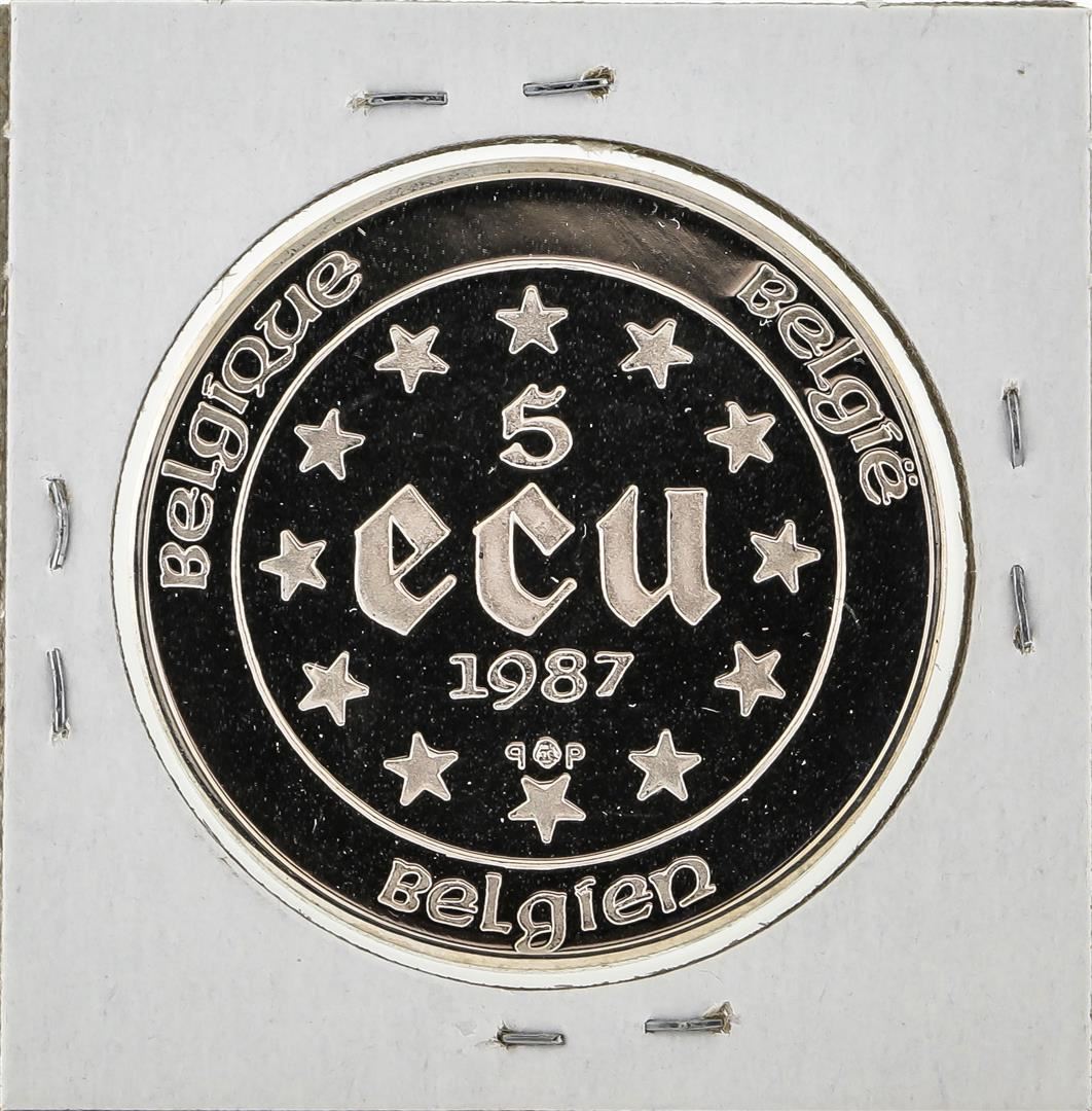 One 1987 Belgium 5 ECU Silver Proof Coin.