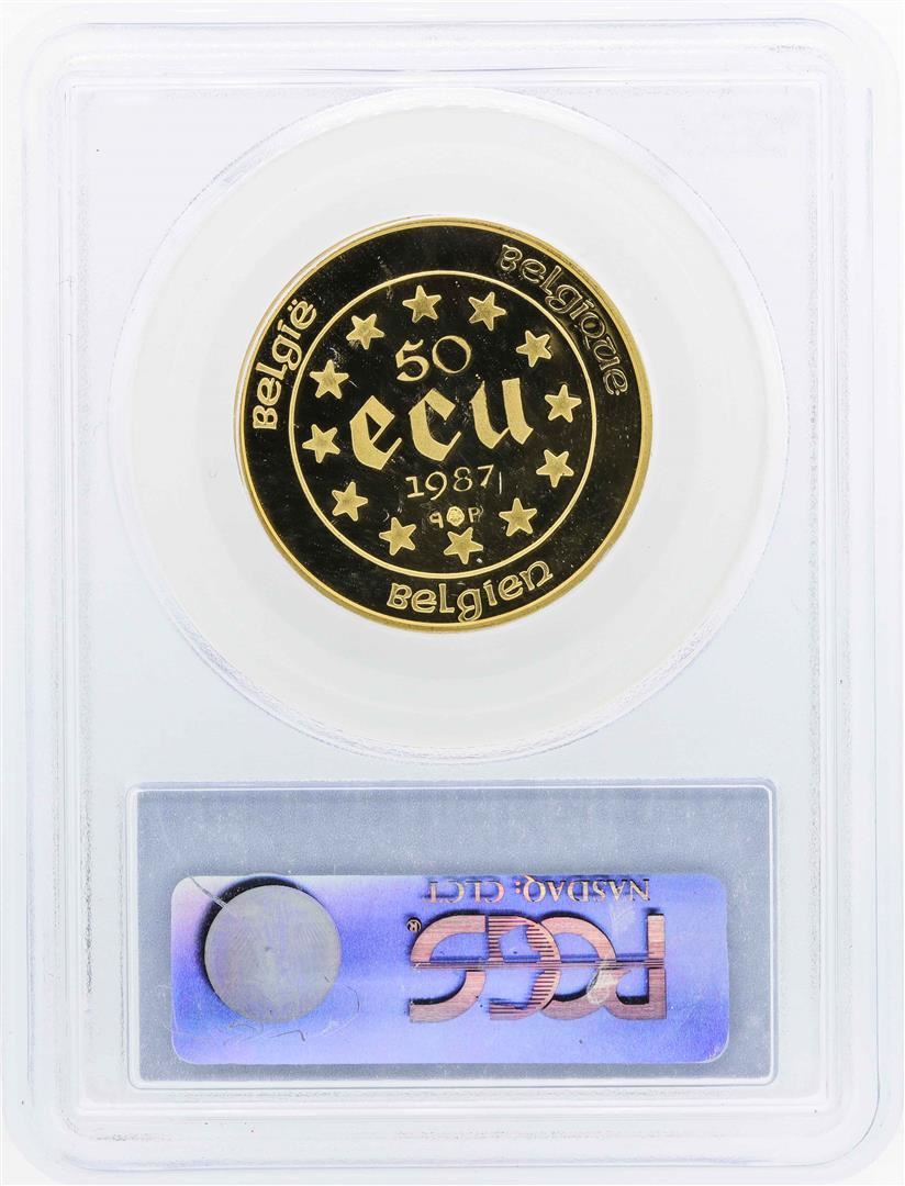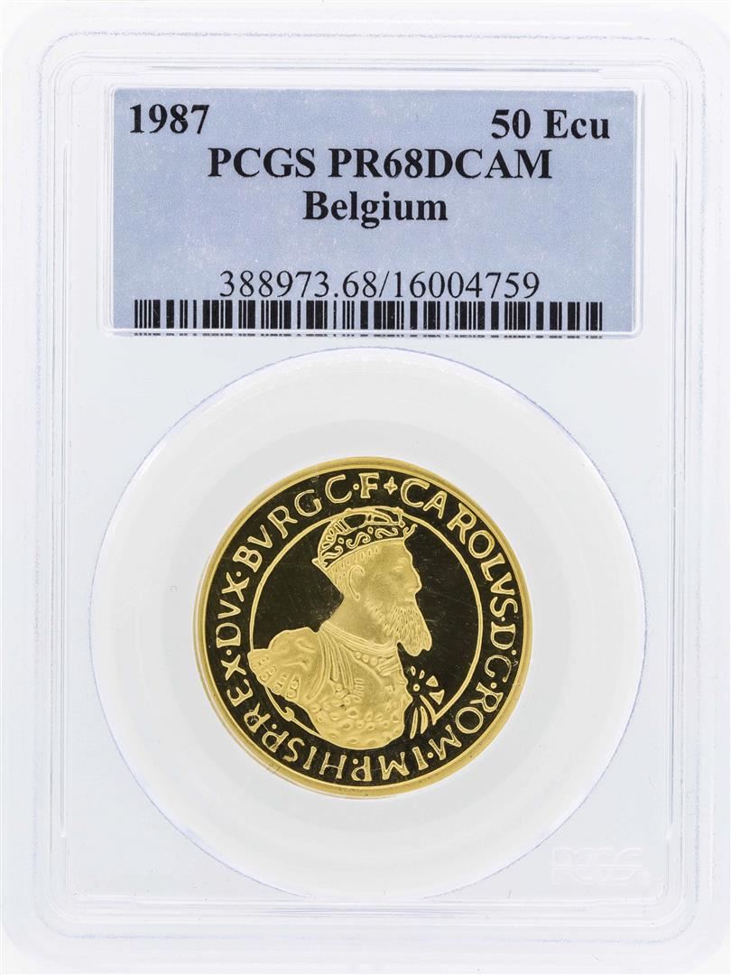 One 1987 Belgium 50 Ecu 1/2 Oz. Gold Coin PCGS PR68DCAM. PCGS Graded.