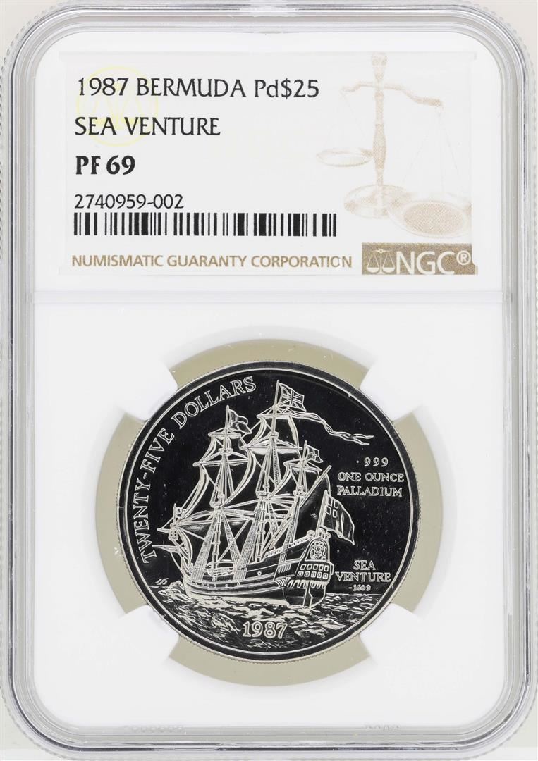 One 1987 Bermuda $25 Palladium Sea Venture Coin NGC PF69. NGC Certified.