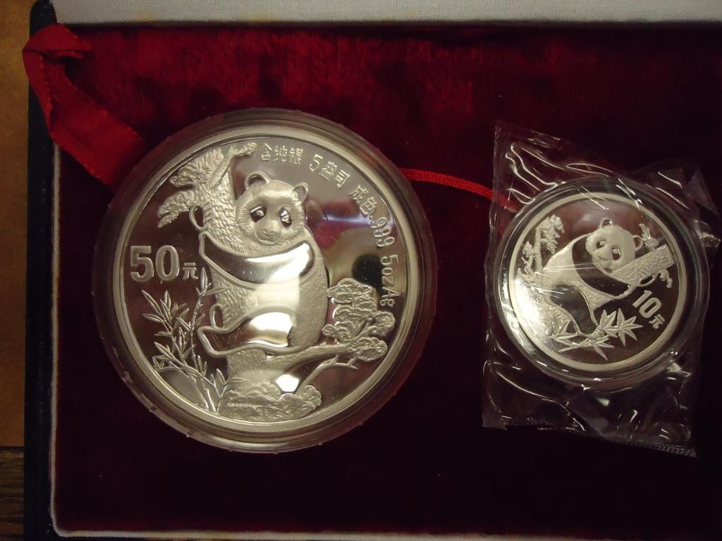 CONTAINS: TEN YUAN 1 OZ COIN AND 50 YUAN 5 OUNCE COIN IN ORIGINAL MINT PACKAGING, #8638 OF 23,000
