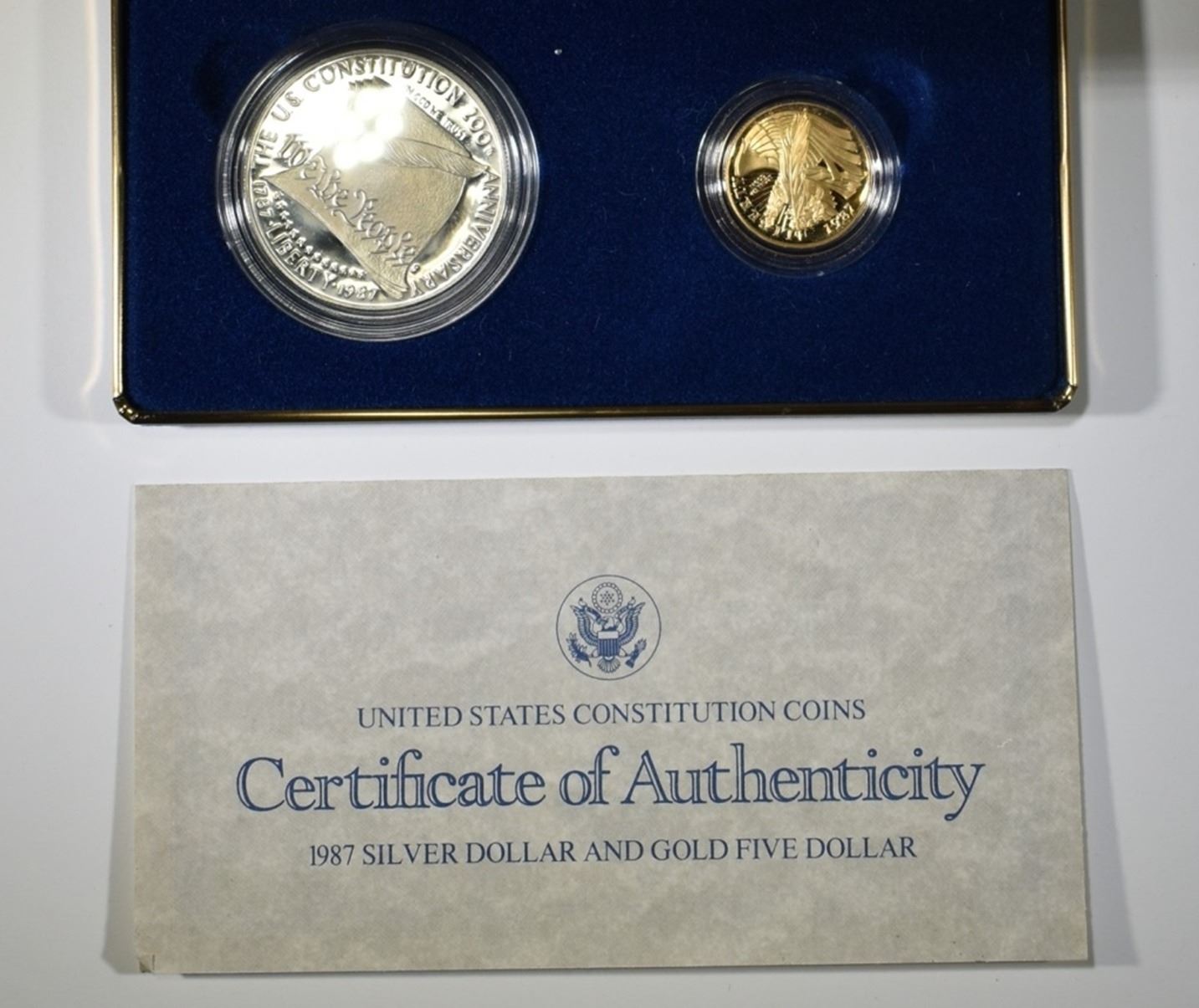 PROOF SILVER DOLLAR & $5.00 GOLD ORIG  PACKAGING ESTIMATE $550 - $600.