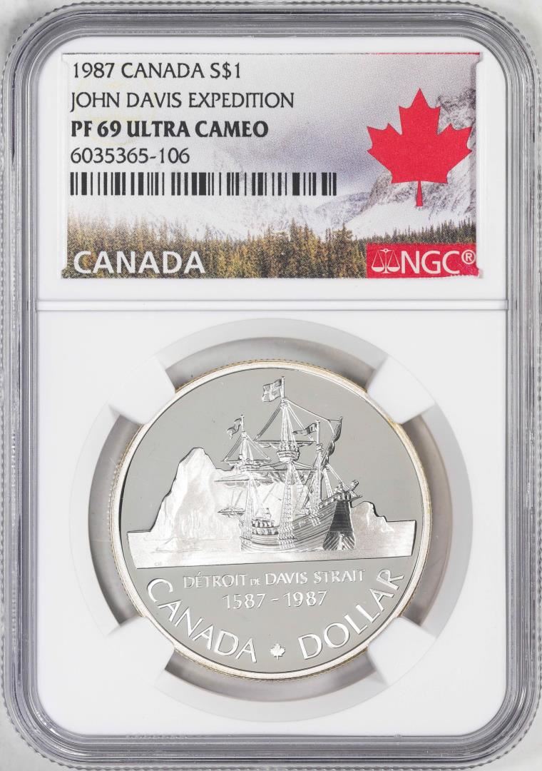 1987 Canada $1 Proof John Davis Expedition Silver Dollar Coin NGC PF69 Ultra Cameo