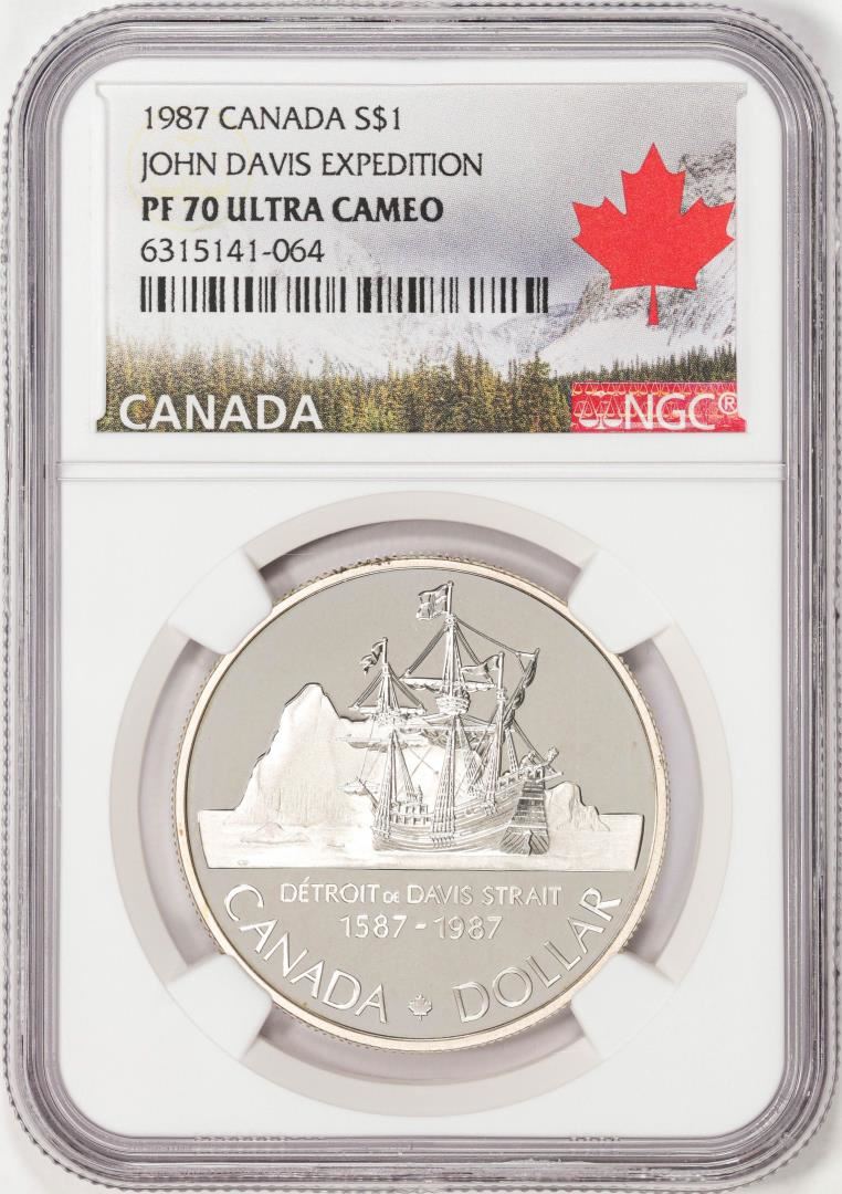 1987 Canada $1 Proof John Davis Expedition Silver Dollar Coin NGC PF70 Ultra Cameo