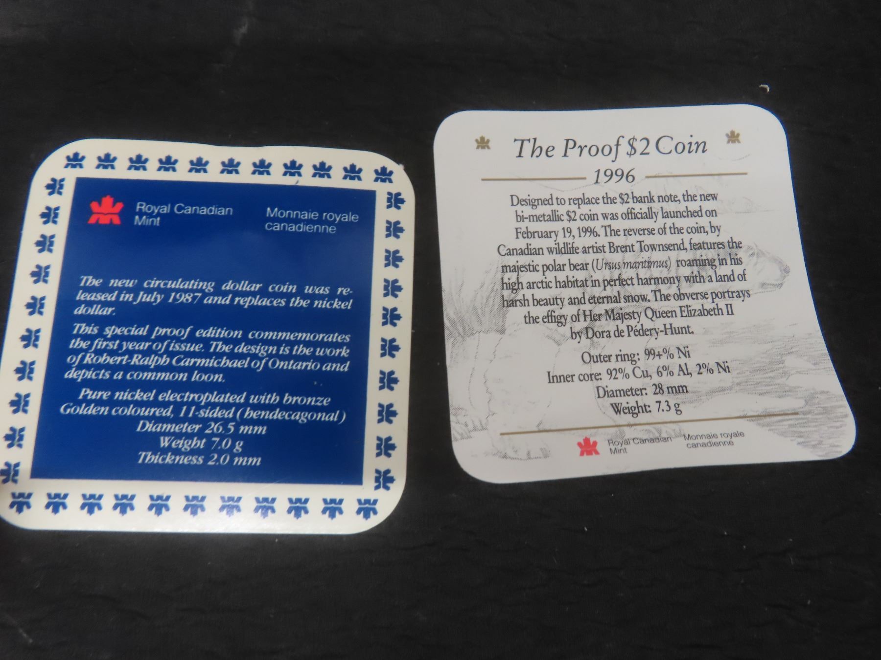 1987 Canadian Proof $1 Coin and 1996 Proof $2 Coin