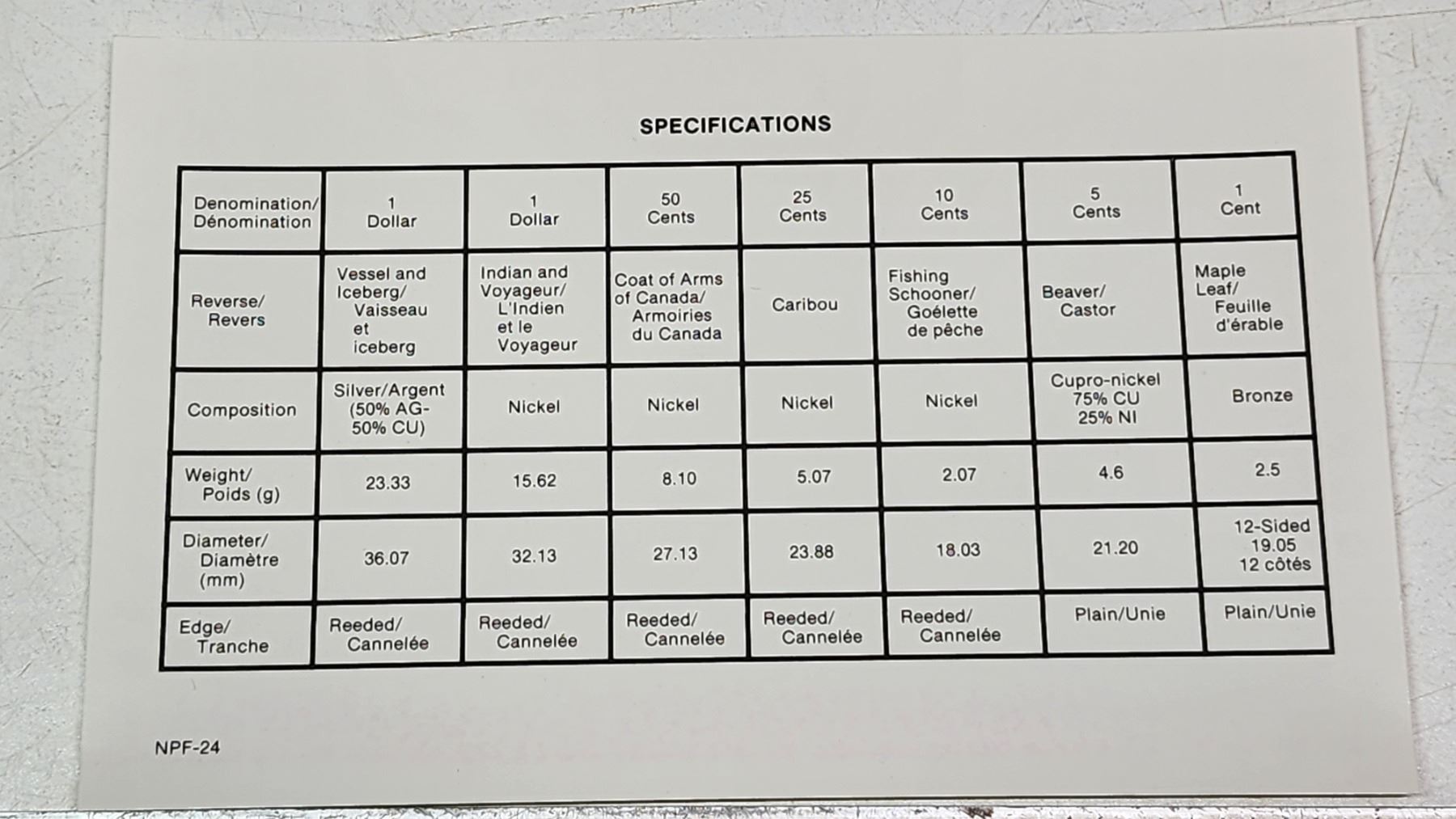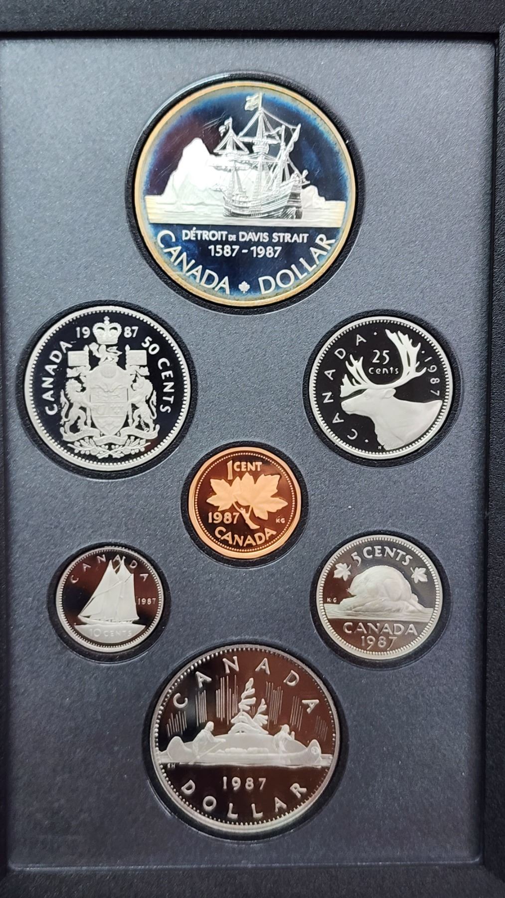 1987 Canadian double dollar 7 coin proof set - Davis Strait silver dollar - in case