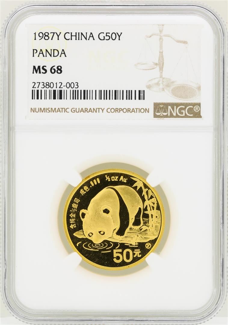 One 1987 China 50 Yuan Panda Gold Coin NGC MS68. NGC Certified.