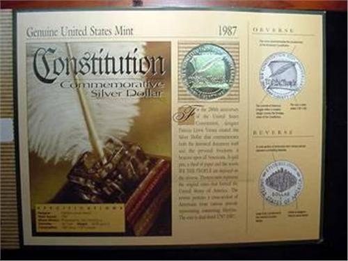 1987 Constitution Commemorative Silver Dollar on Discriptive Panel