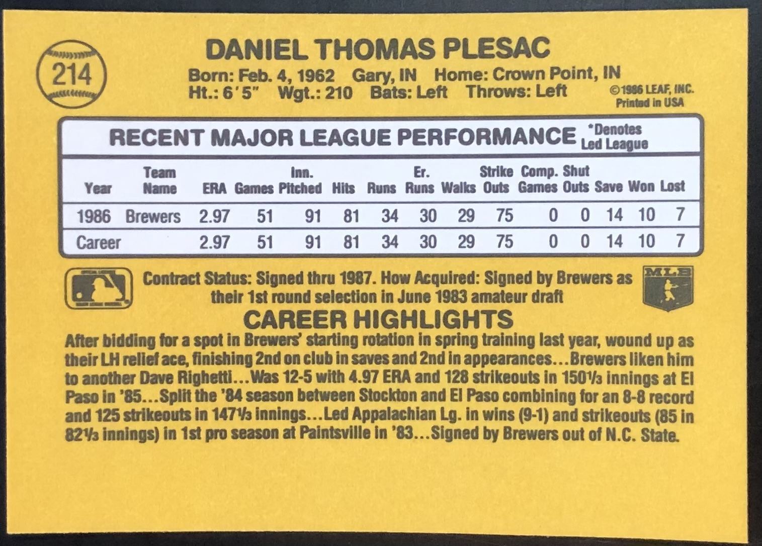 Card #214 vintage, MLB, baseball, rookie