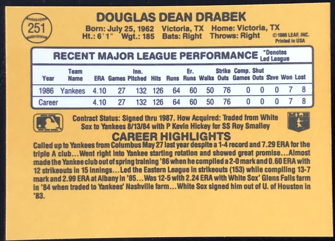 Card #251 MLB, baseball, vintage, rookie