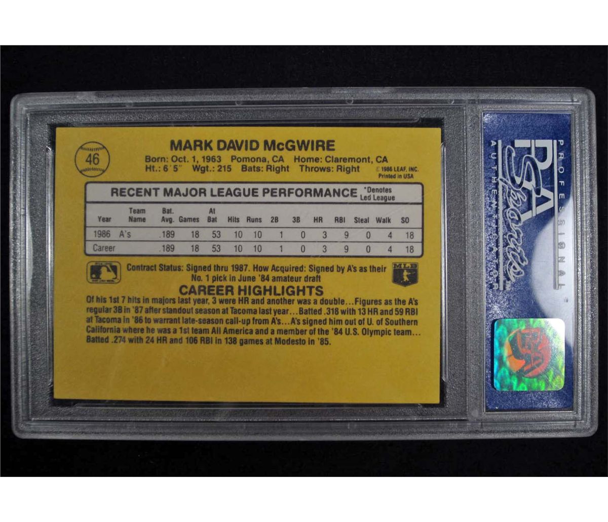 1987 DONRUSS NO. 46 MARK MCGWIRE BASEBALL CARD - PSA MINT 9