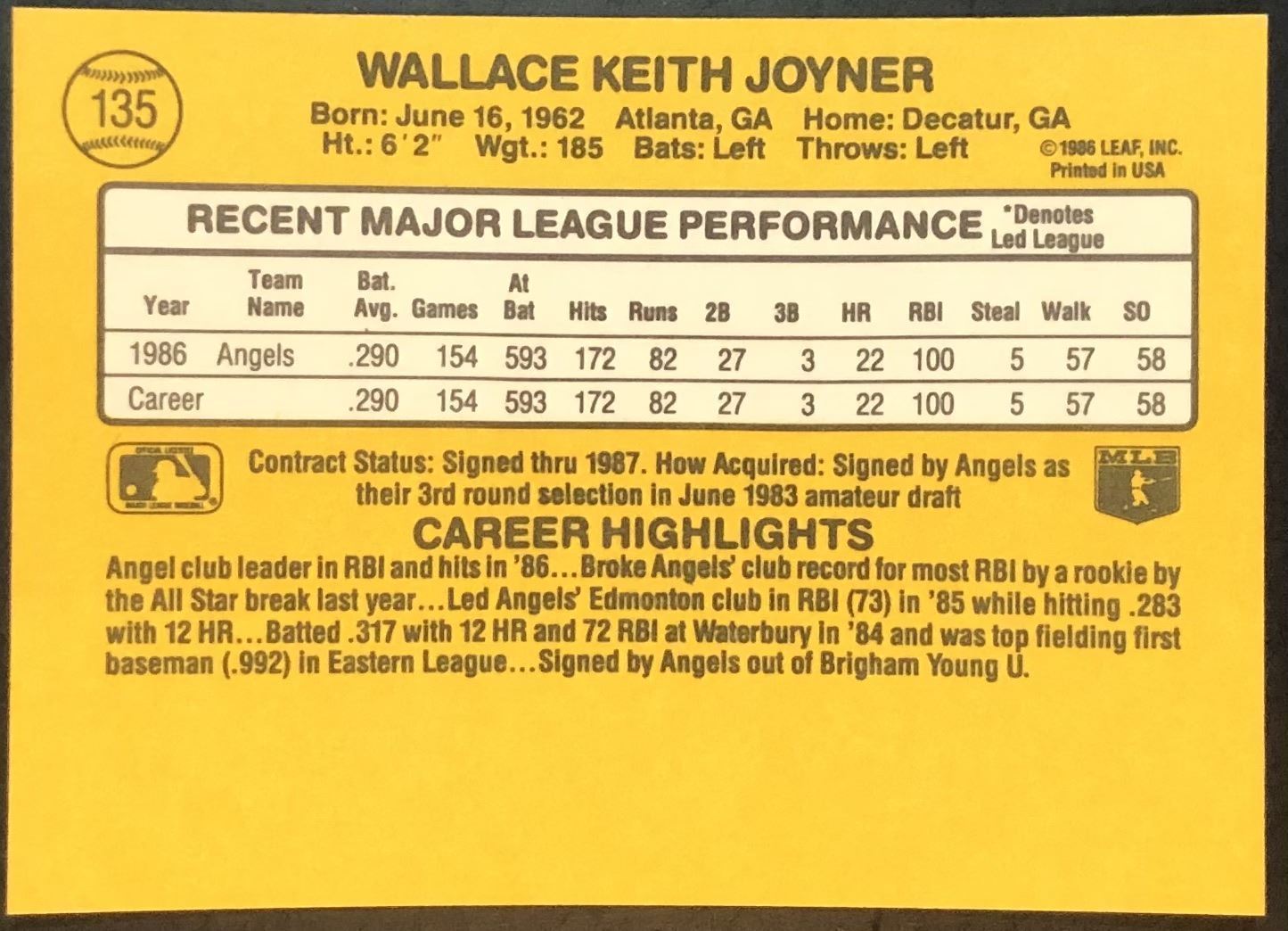 Card #135 MLB, baseball, rookie, vintage