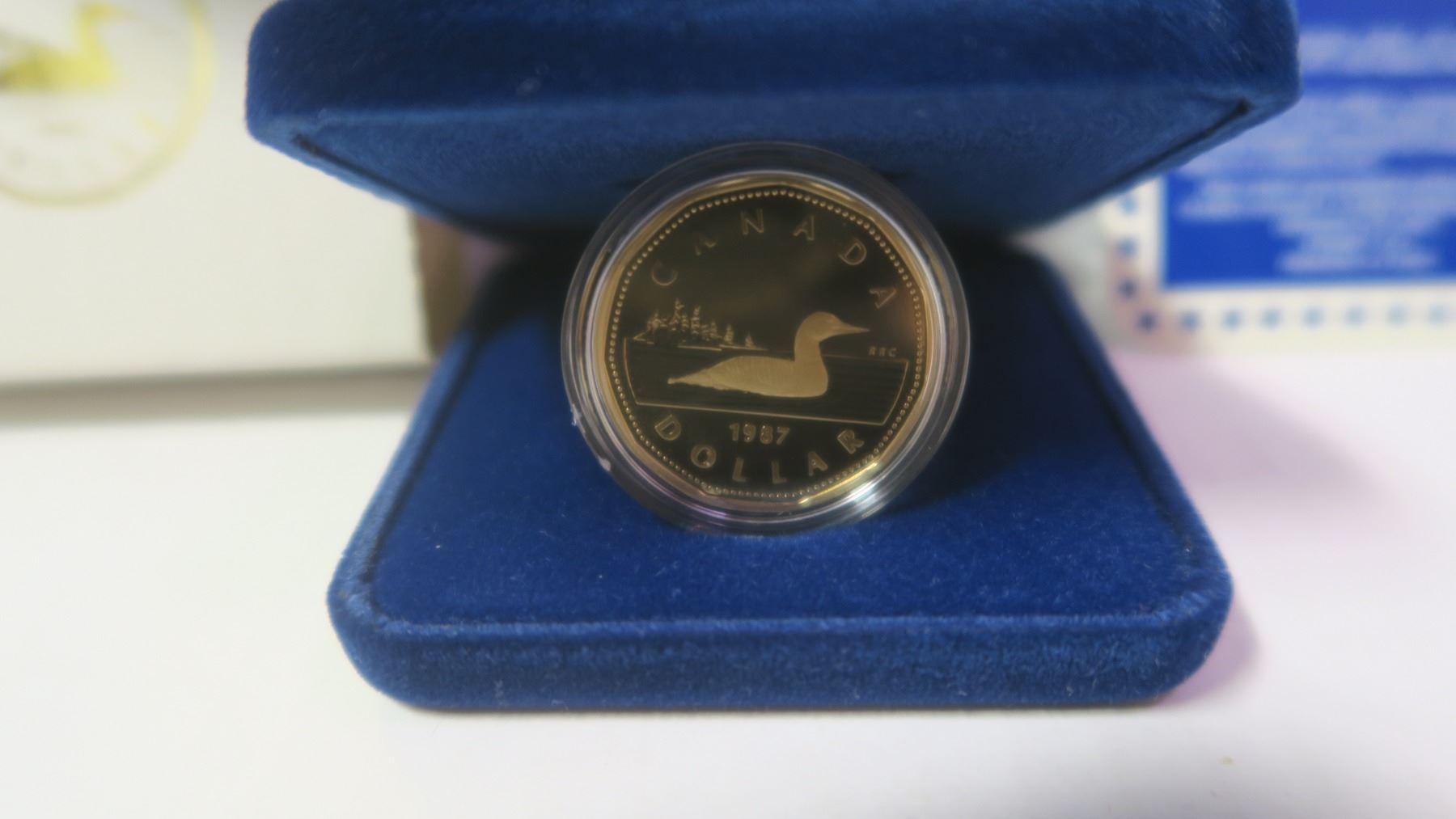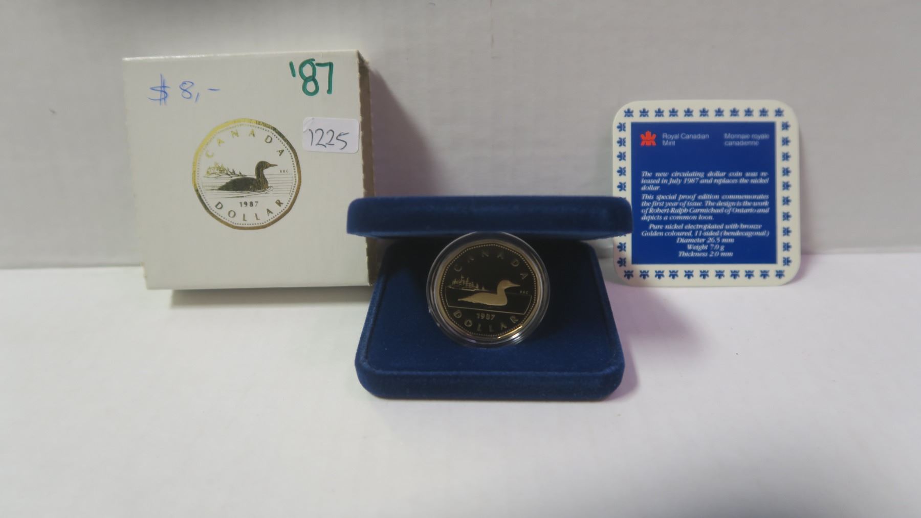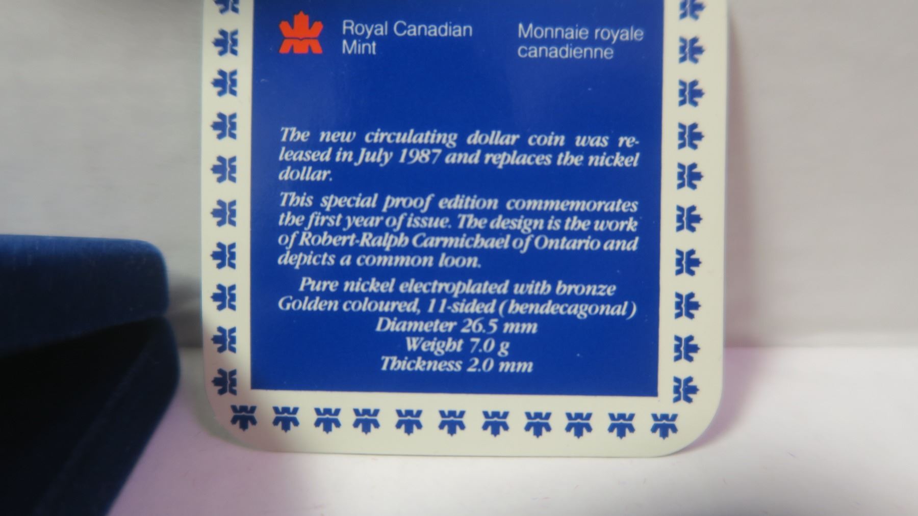1987 First Loonie Dollar. Proof with Ultra Heavy Cameo. Housed in its original case of issue.