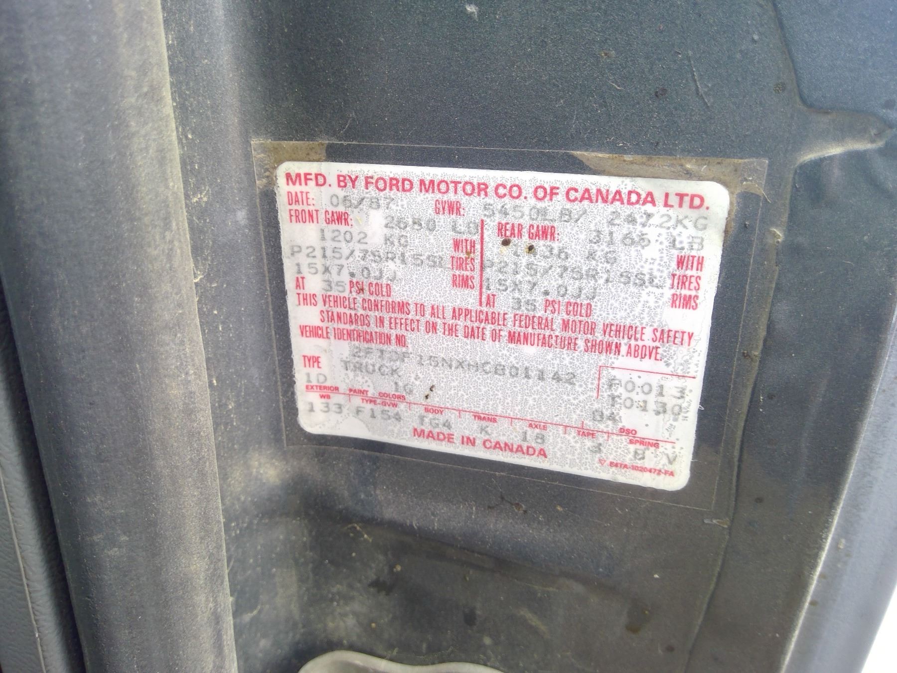 1987 Ford F-150 VIN: 2FTDF15NXHCB01142 - Has Key *AS IS*