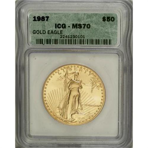 1987 G$50 One-Ounce Gold Eagle MS70 ICG