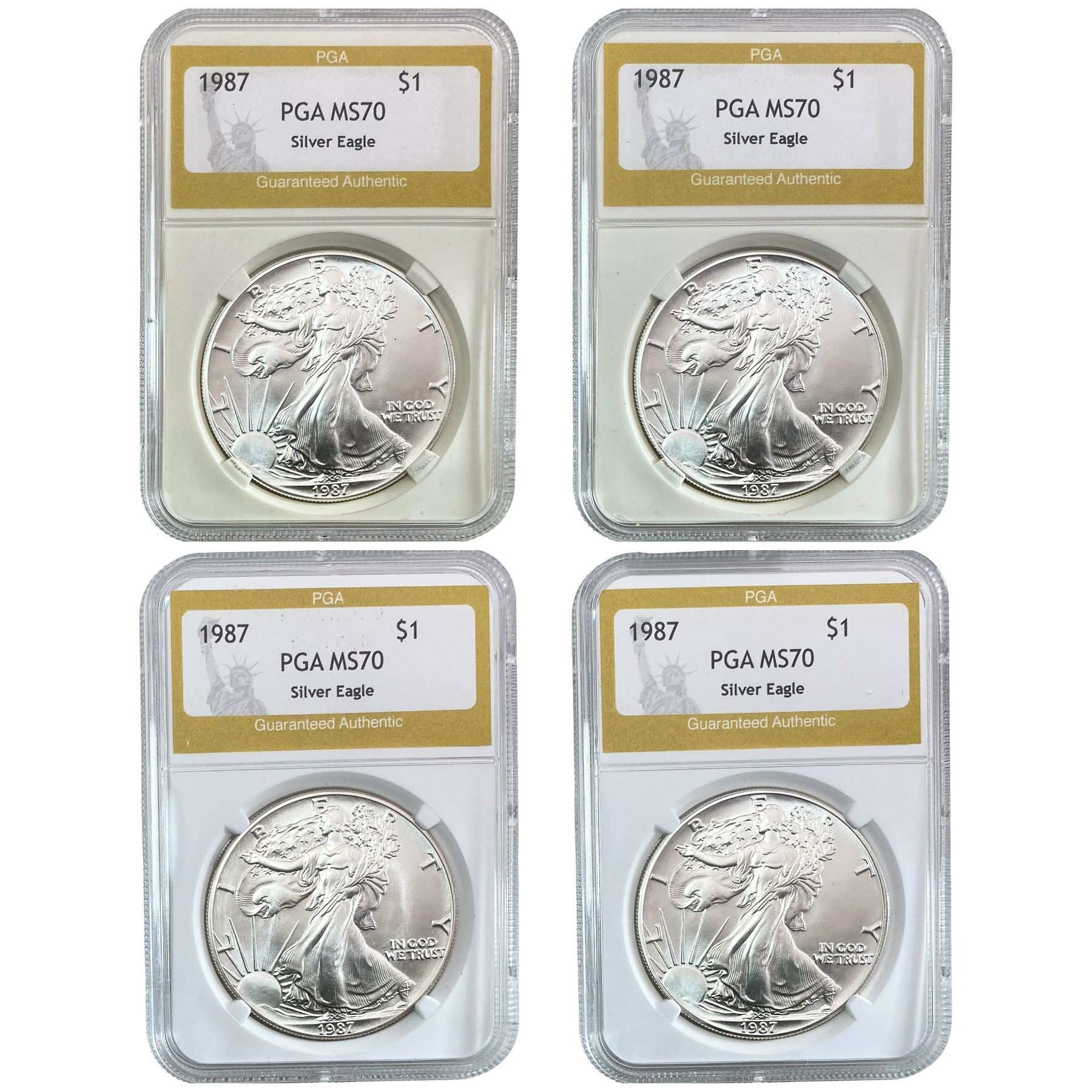 1987 GEM BU Silver Eagle [4 Coins] PGA MS70