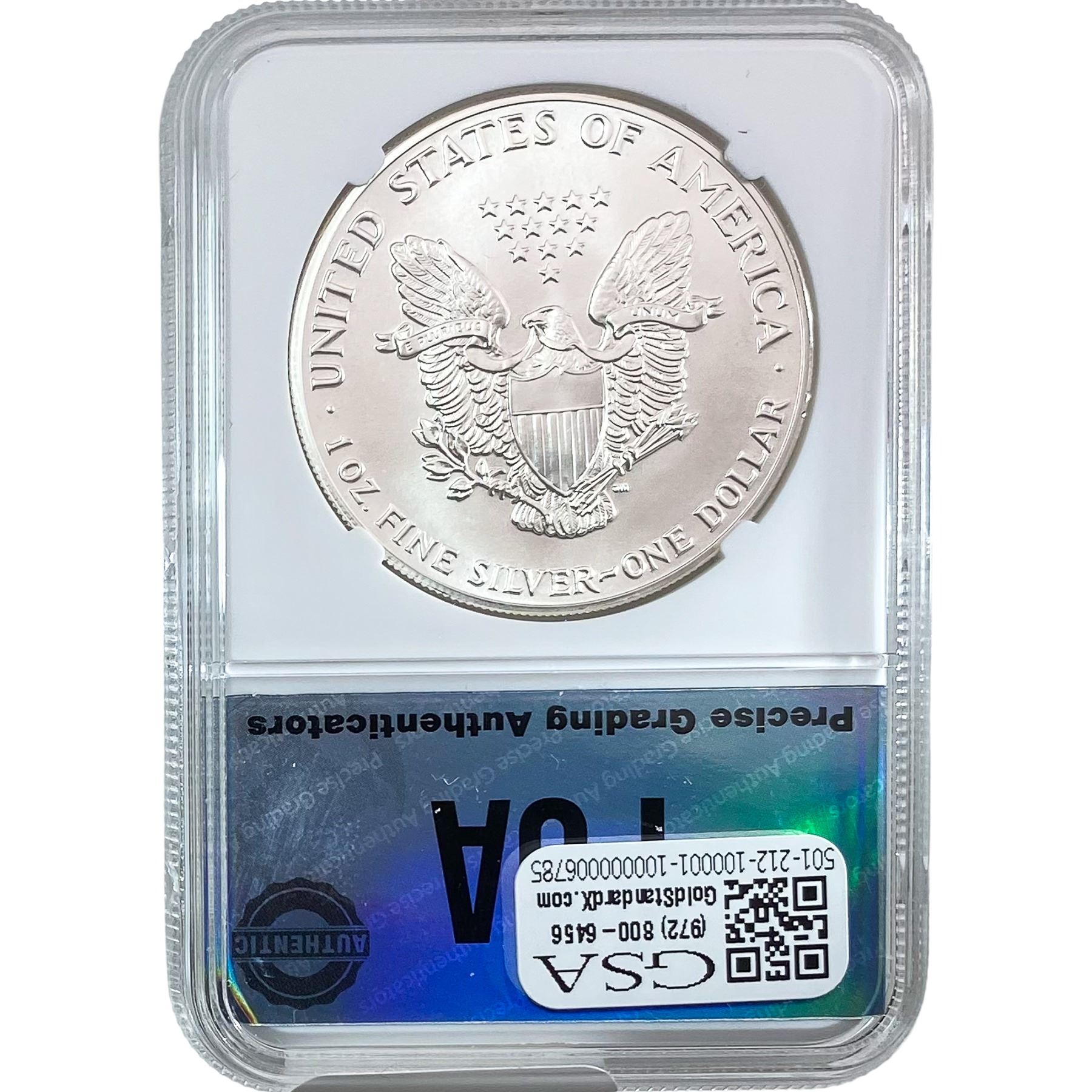 e. Coins sold referencing a third-party grading service are sold “AS IS” without any express or implied warranty, except for a guarantee by GSA that they are genuine. Removal or alteration of the holder, voids all of Bidder’s claims concerning that Product. Certain warranties may be available from the grading services and Bidders are referred to them for further details: Numismatic Guaranty Corporation (NGC), PO Box 4776, Sarasota, FL 34230, www.ngccoin.com/services/writtenguarantee.asp; Professional Coin Grading Services (PCGS), PO Box 9458, Newport Beach, CA 92658, www.pcgs.com/guarantee.html; ANACS, 6555 S. Kenton St., Ste. 303, Englewood, CO 80111; and Independent Coin Grading Co. (ICG), 7901 East Bellview, Ave., Suite 50, Englewood, CO 80111.