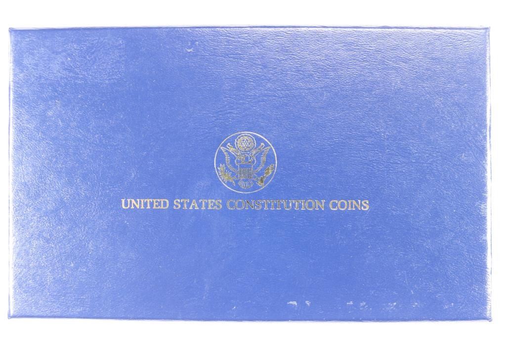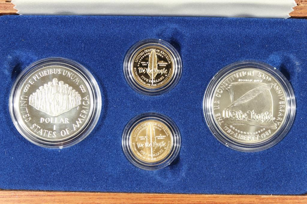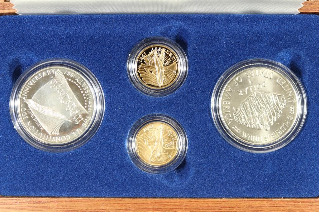 FOUR-COIN SET, CONTAINS: 1987-W PROOF AND UNC GOLD $5 1/4 OZ. EACH AND 1987-S & P PROOF AND UNC SILVER DOLLARS. ORIGINAL US MINT PACKAGING