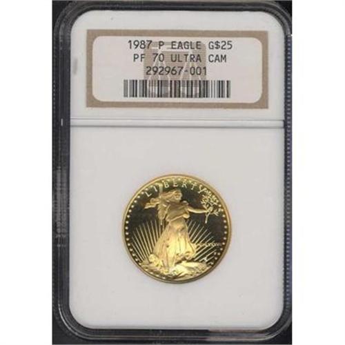 <b>1987 Gold Eagle $25. NGC graded PF70 UC.</b> Collector's Universe price: $1500. A lustrous and exquisitely preserved Superb Gem that has hues of beautiful bright golden color <b>(PCGS # 9813)</b>