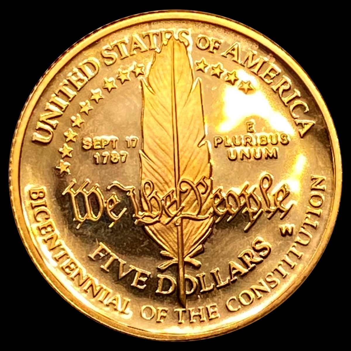 1987 Gold Liberty Constitution $5 Coin GEM PROOF