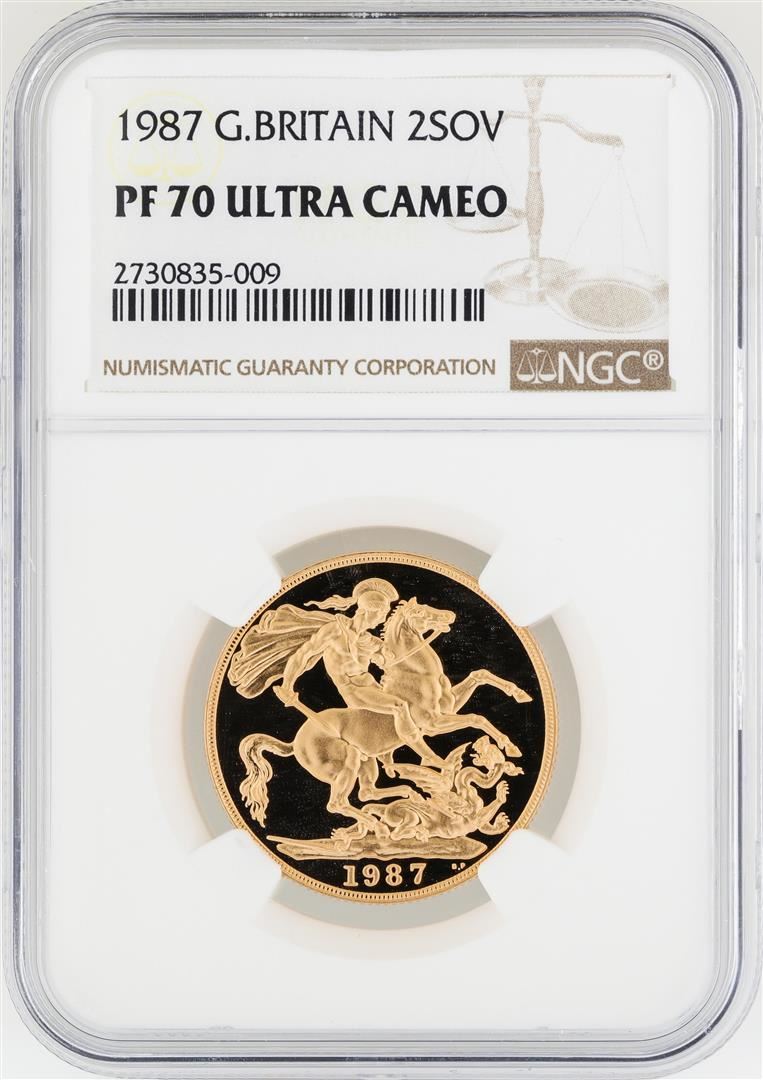 One 1987 Great Britain 2 Sovereign Gold Coin NGC PF70 Ultra Cameo. NGC Certified.
