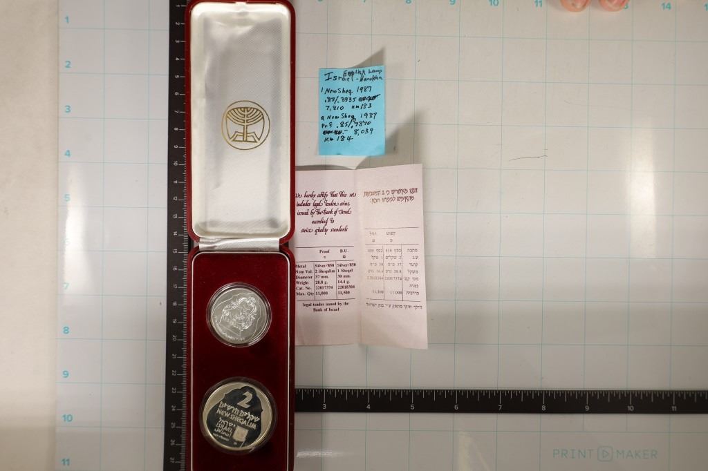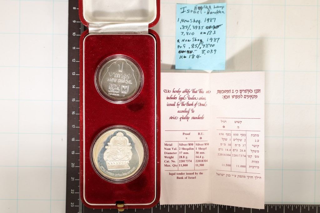 GRAMS) & 2 SHEQALIM (28.8 GRAMS). BOTH ARE IN HARD PLASTIC CAPSULE IN ORIGINAL MINT PACKAGING. .850 OF SILVER EACH HAS A LIMITED MINTAGE. 1 SHEQEL IS LIMITED TO 11,500 AND THE 2 SHEQALIM IS LIMITED TO 11,000.