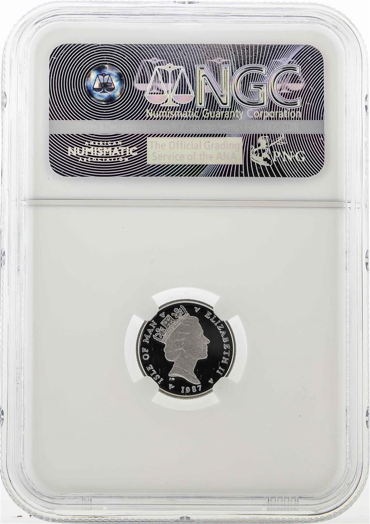 One 1987 Isle of Man 1/10 Ounce Platinum Coin NGC PF 69 Ultra Cameo. NGC Certified.