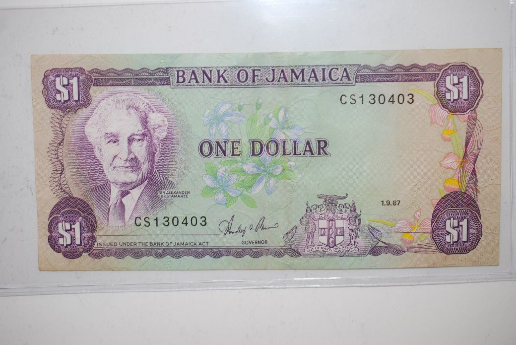 1987 Jamaica $1 Foreign Bank Note; EST. $3-5