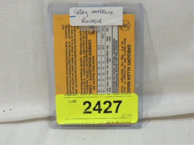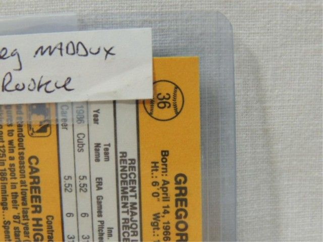 1987 LEAF #36 ROOKIE BASEBALL PLAYER CARD. GREGORY ALLEN MADDUX. AS SHOWN. SEE PICTURE FOR DETAILS.