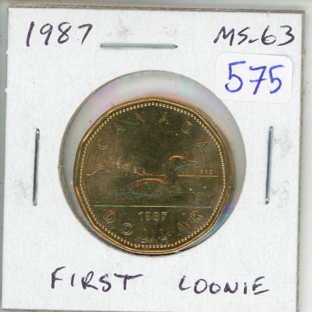 1987 Loonie Dollar. The first year of the Loonie. MS-63 from an original roll.