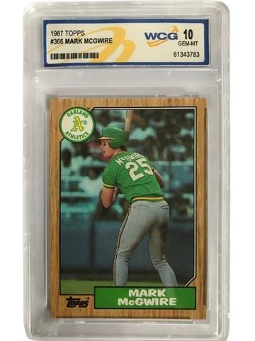 1987 Topps Mark McGwire Oakland A's rookie card # 366, graded 10, gem mint by WCG.