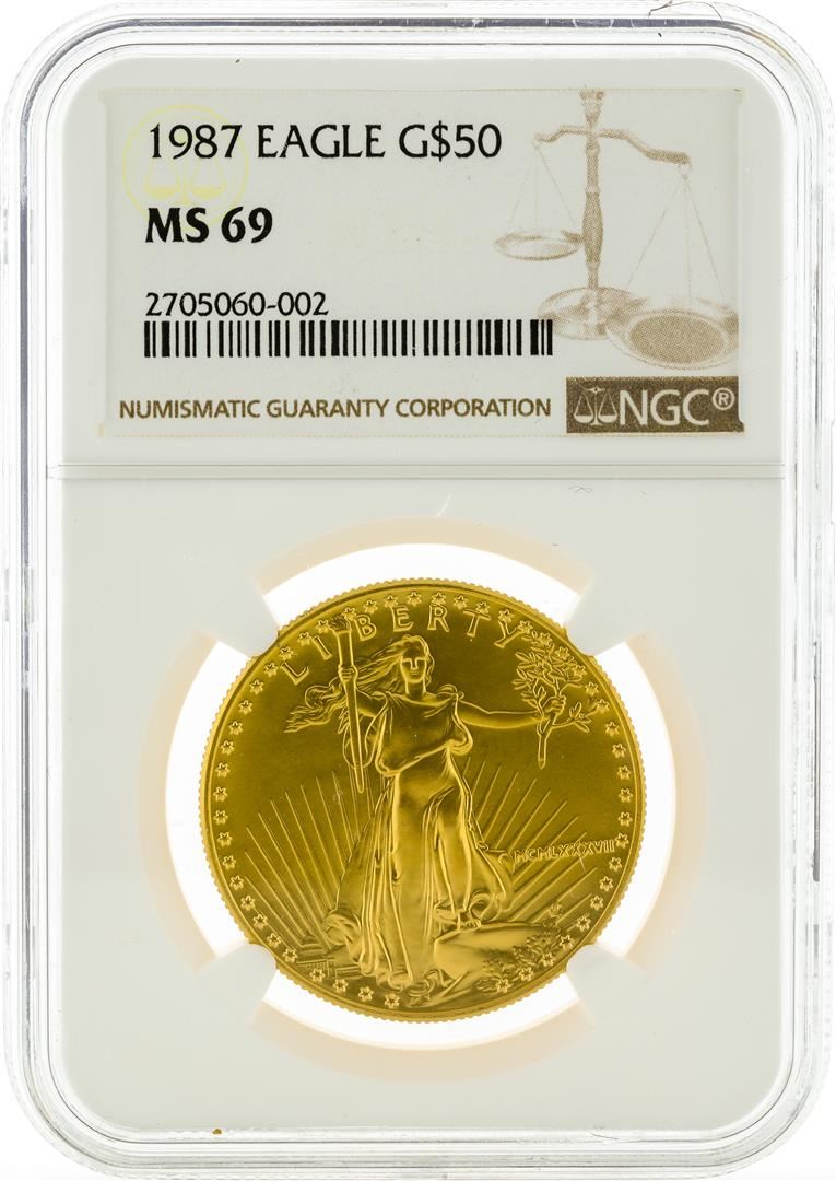 One 1987 NGC MS69 $50 Eagle Gold Coin. NGC Certified.