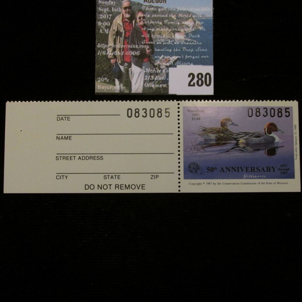 1987 No. 9a Missouri Department of Conservation Waterfowl Stamp, unsigned, NH, Very Fine. Complete w