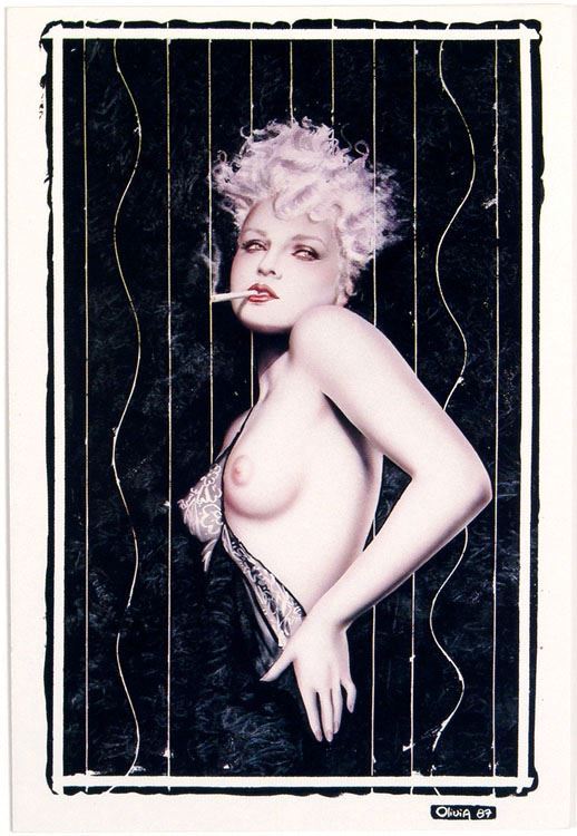 This is a vintage 1987 greeting card with artwork by Olivia De Berardinis. Titled Belle Du Jour. O Card Corp. Printed in U.S.A. **MORE nude/risque cards (from Olivia and other erotica artists) in this auction. From the estate of a big collector of pin-up and risque art. SIZE: Approx. 4 1/2" x 6 3/4". Olivia De Berardinis, or simply Olivia, is an American artist who is known for her paintings of women, often referred to as pinup or cheesecake art. She has been working in this genre since the mid-1970s. De Berardinis' artwork has been shown in art galleries throughout the United States and Japan, and her work is collected by fans worldwide. An original De Berardinis painting now appears in each issue of Playboy magazine.