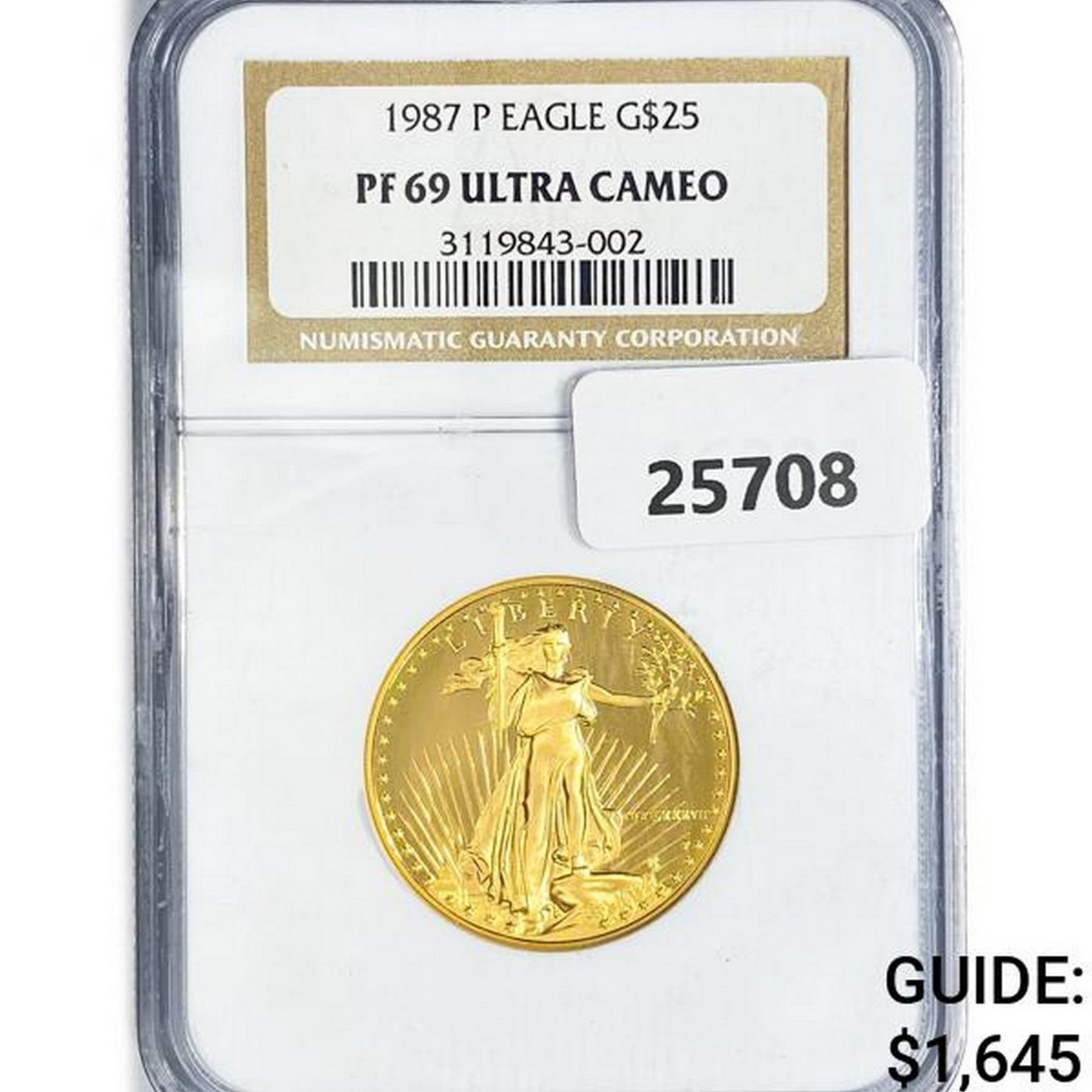 1987 P $25 1/2oz American Gold Eagle NGC PF69 UC