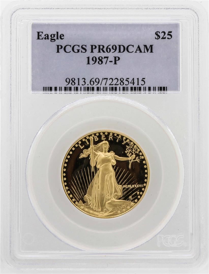 One 1987-P $25 American Gold Eagle Proof Coin PCGS PR69DCAM . PCGS Graded.