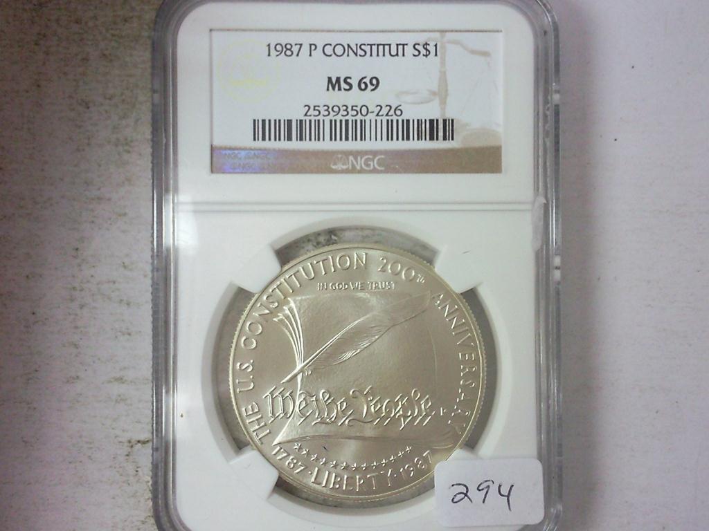 1987-P CONSTITUTION SILVER DOLLAR NGC MS69