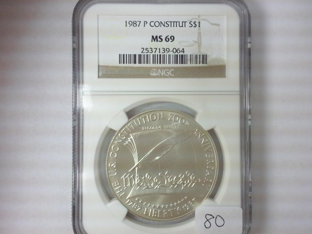 1987-P CONSTITUTION SILVER DOLLAR NGC MS69