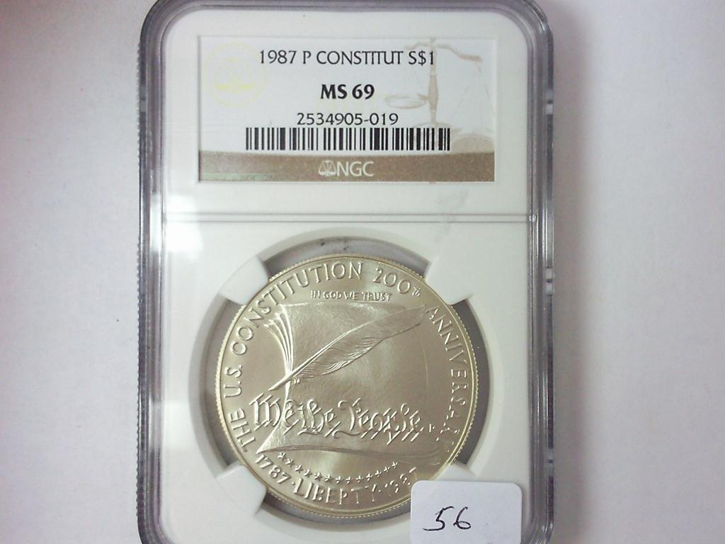 1987-P CONSTITUTION SILVER DOLLAR NGC MS69