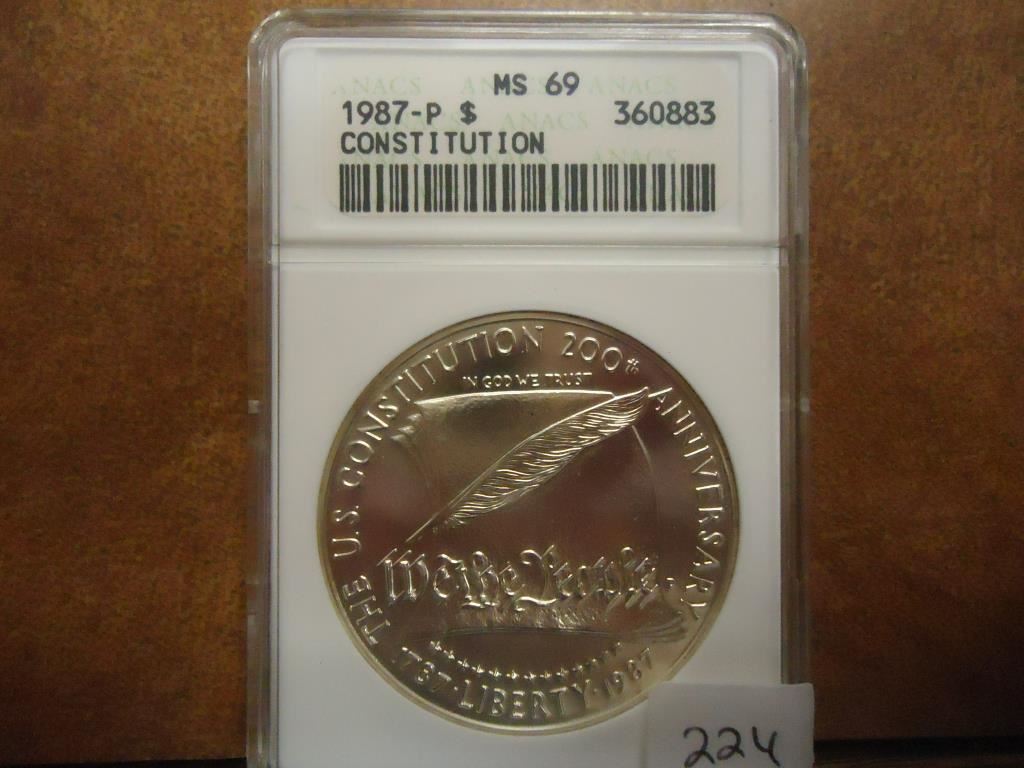 1987-P US CONSTITUTION SILVER DOLLAR ANACS MS69