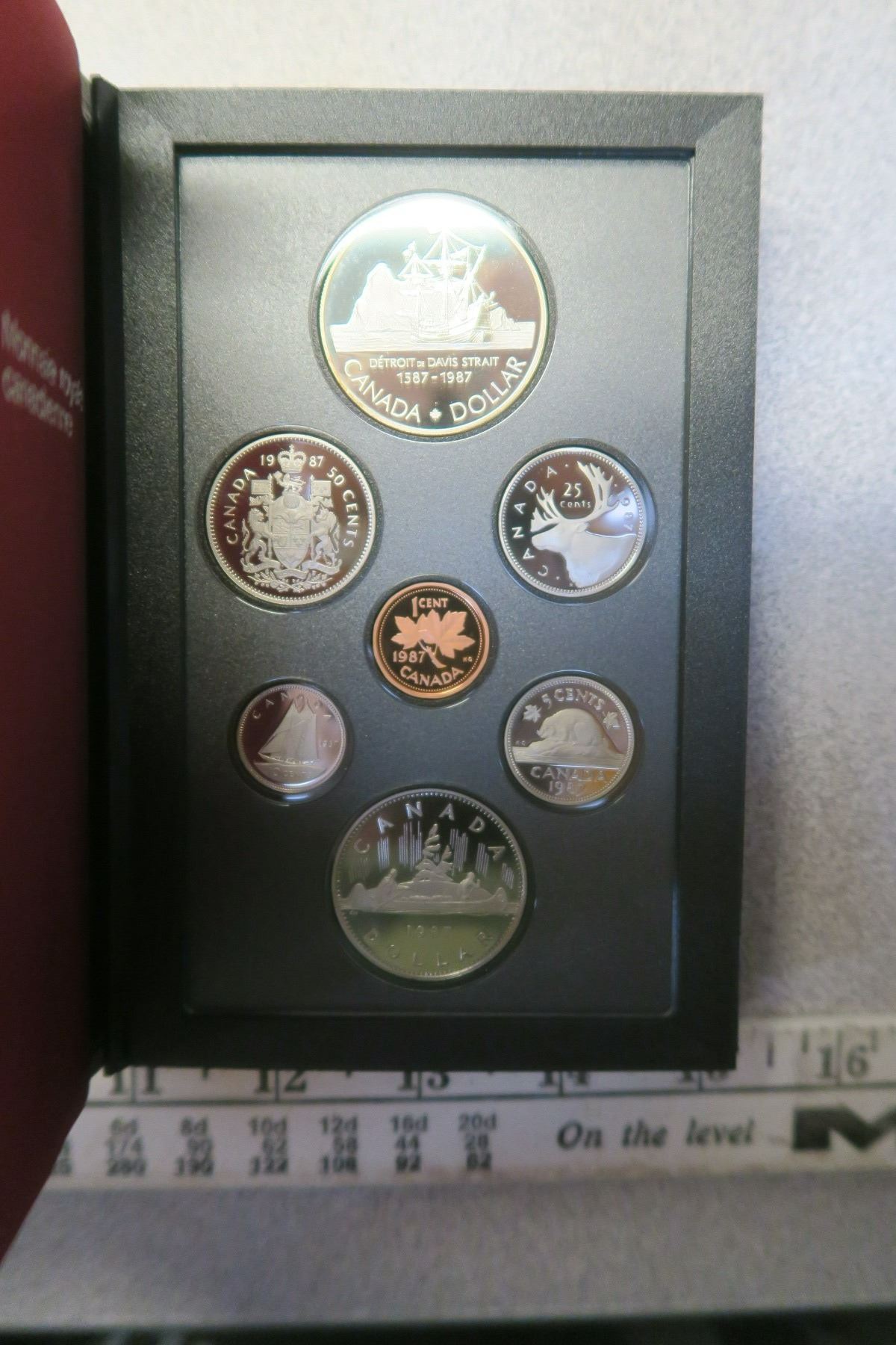 1987 Proof Set. 7-coin set includes Silver Dollar that commemorates the 400th Anniversary of John Davis’s exploration for the North-West Passage. Proof with Ultra Heavy Cameos. Housed in its original case of issue. Bright White.