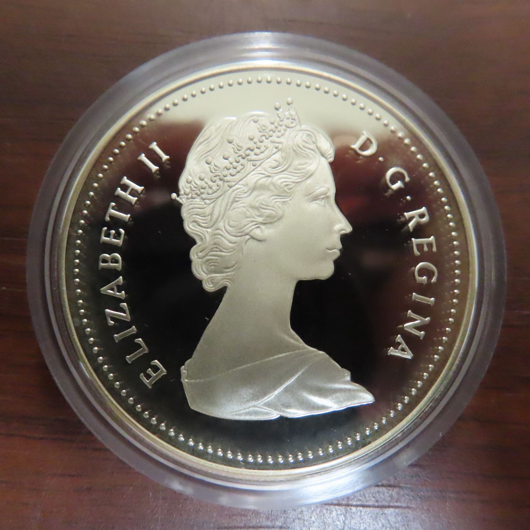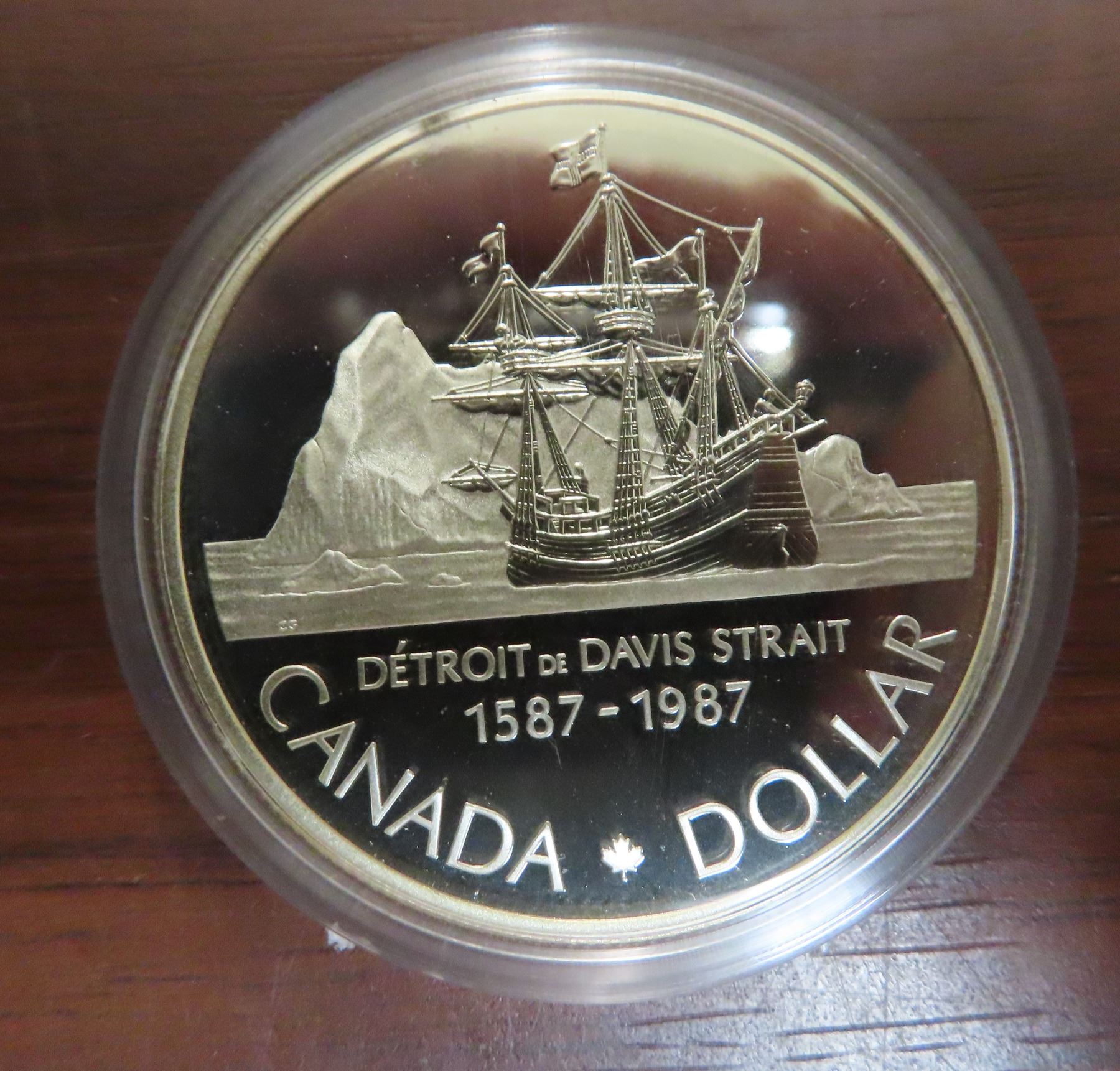 1987 Proof Silver Dollar. Commemorates the 400th Anniversary of John Davis, who explored the Canadian Arctic Islands. Davis Strait is named after him. Housed in its original Royal Canadian Mint case of issue. Bright White.