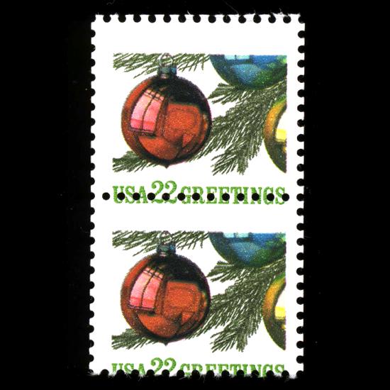 Rare mint condition mis-perforation error PAIR; #2368 Season's Greetings