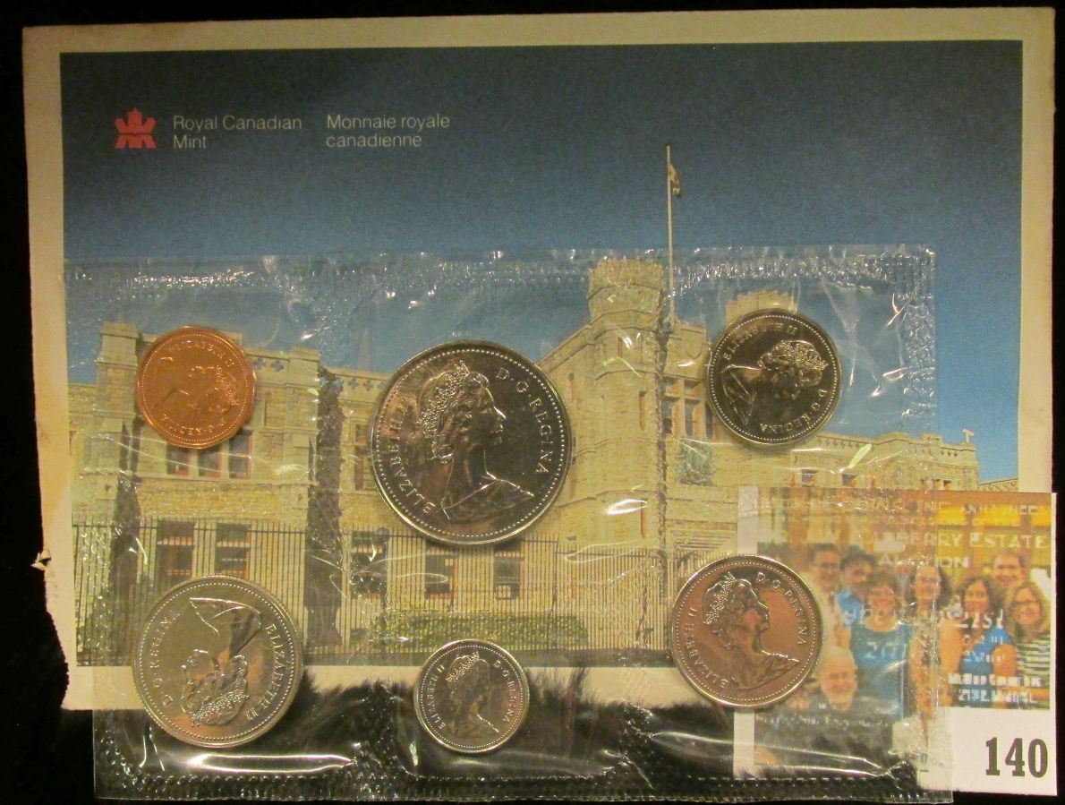1987 Royal Canadian Mint Set, Six-piece. Original as issued. Envelope tattered on one edge.