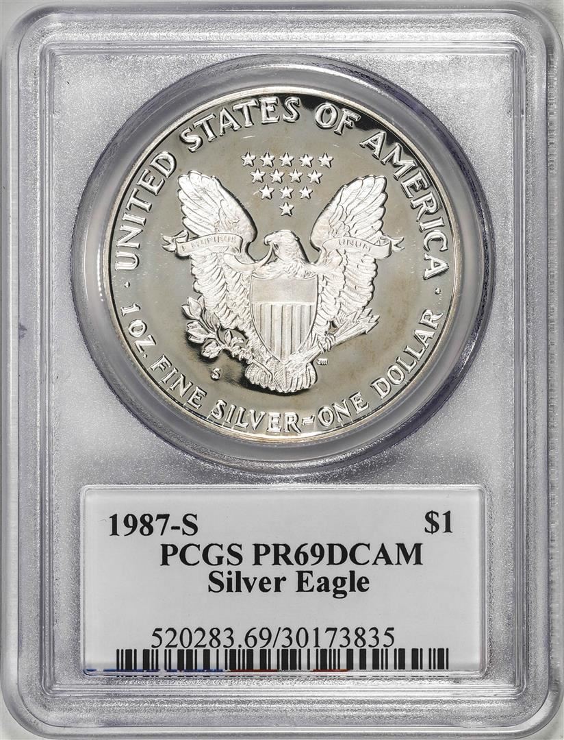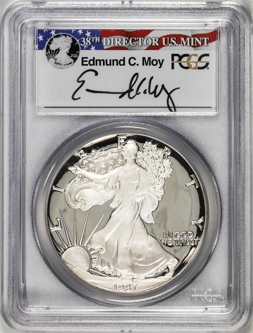 1987-S $1 Proof American Silver Eagle Coin PCGS PR69DCAM Edmund Moy Signature