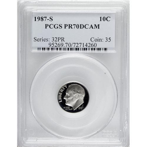 1987-S 10C PR70 Deep Cameo PCGS. PCGS Population (