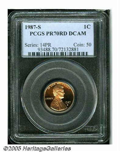 <B>1987-S<1C> PR70 Deep Cameo PCGS.</B></I> Sparkling bright and essentially as struck, this perfect Superb Gem exhibits excellent field-to-device contrast. The multiple struck surfaces also exhibit an interesting orange-peel appearance. Population: 30 in 70 (5/05).