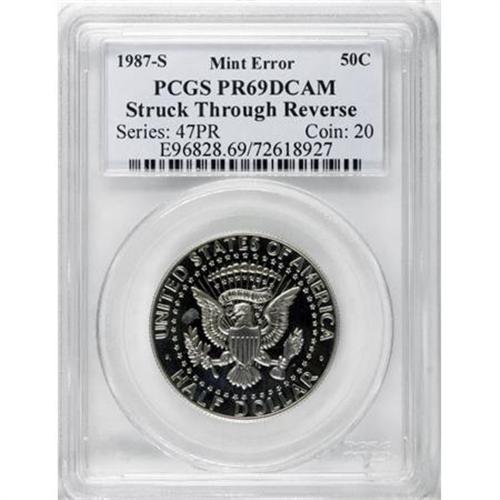 <B>1987-S 50C Kennedy Half Dollar--Struck Thru Reverse--PR69 Deep Cameo PCGS.</B></I><BR><BR><b>Shipping:</b> Coins & Currency (<a target="_blank" href="http://www.heritageauctions.com/common/shipping.php">view shipping information</a>)