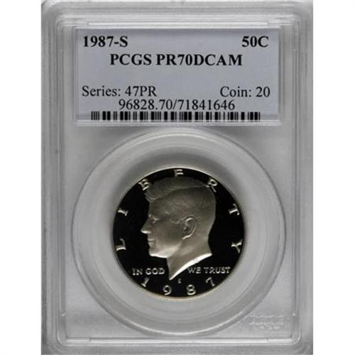 <B>1987-S 50C PR70 Deep Cameo PCGS.</B></I> PCGS Population (90/0). NGC Census: (36/0). Numismedia Wsl. Price for NGC/PCGS coin in PR70: $300. (#96828)<BR><BR><b>Shipping:</b> Coins & Currency (<a target="_blank" href="http://www.heritageauctions.com/common/shipping.php">view shipping information</a>)